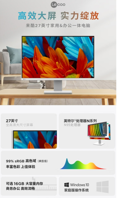 联想(Lenovo) 来酷LecooAIO 一体机 办公家用商用台式机电脑 全高清屏 23.8英寸:10纳米N5095 8G 256G黑