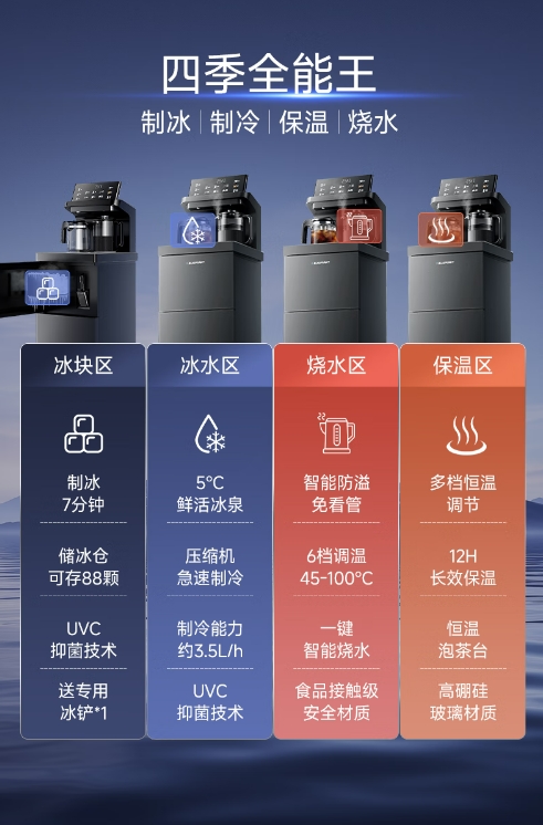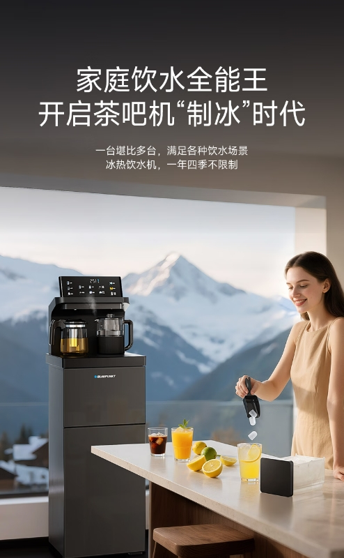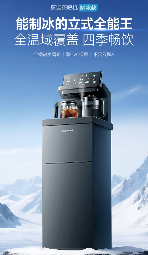BLAUPUNKT蓝宝 冰块茶吧机2025新款家用智能下置水桶高端立式多功能制冰饮水机 【双UVC抑菌设计·七分钟制冰】 冷热型
