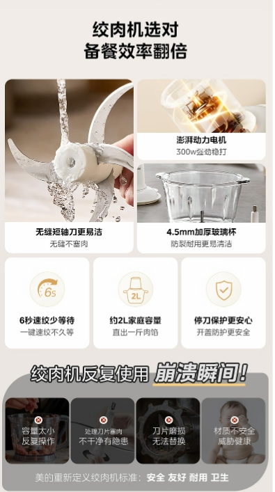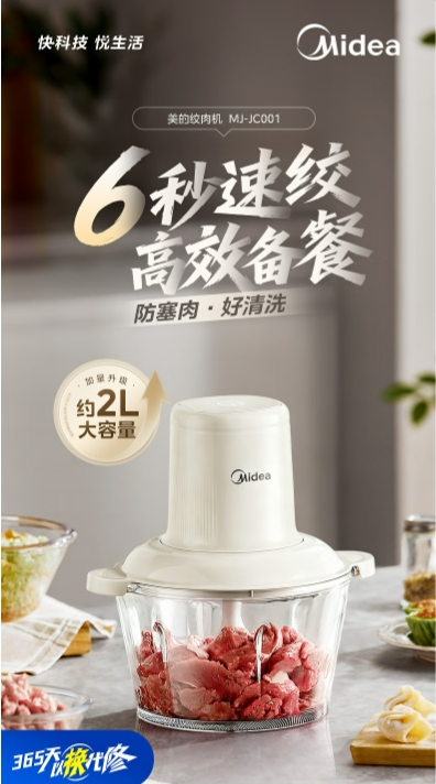 美的(Midea)绞肉机家用绞馅机 碎肉机 电动多功能料理搅拌机饺子肉馅辅食机 蒜蓉机 搅肉机JC001约2L