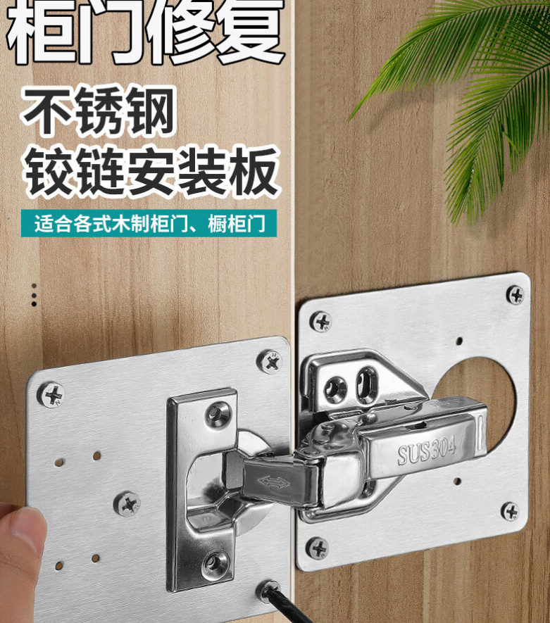 不锈钢柜门合页修复固定板铰链橱衣柜飞机神器合页荷叶垫片折页 薄款1片装(配螺丝)