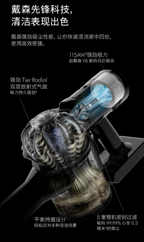 戴森(DYSON)V8无绳吸尘器【升级款】手持无线吸尘器 除螨 宠物 家庭适用