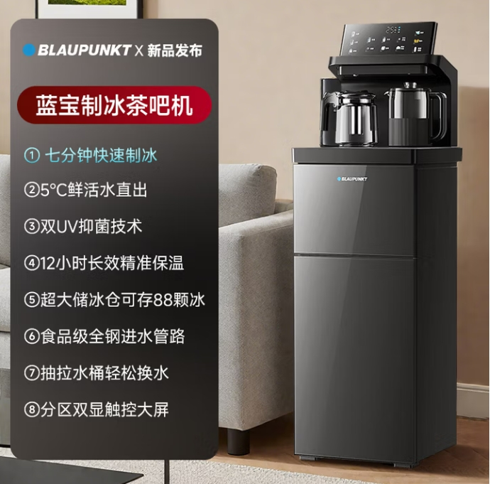 BLAUPUNKT蓝宝 冰块茶吧机2025新款家用智能下置水桶高端立式多功能制冰饮水机 【双UVC抑菌设计·七分钟制冰】 冷热型