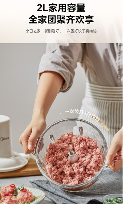 美的(Midea)绞肉机家用绞馅机 碎肉机 电动多功能料理搅拌机饺子肉馅辅食机 蒜蓉机 搅肉机JC001约2L
