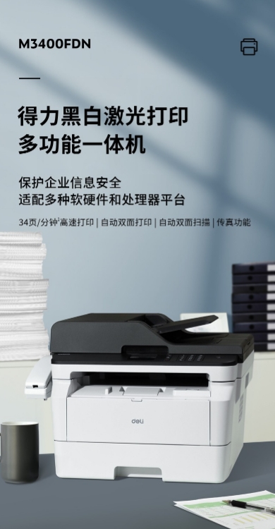 得力(deli)M3400FDN黑白激光打印机自动双面A4复印扫描传真商用办公专用一体 M3400ADN(三合一+双面+网络打印)